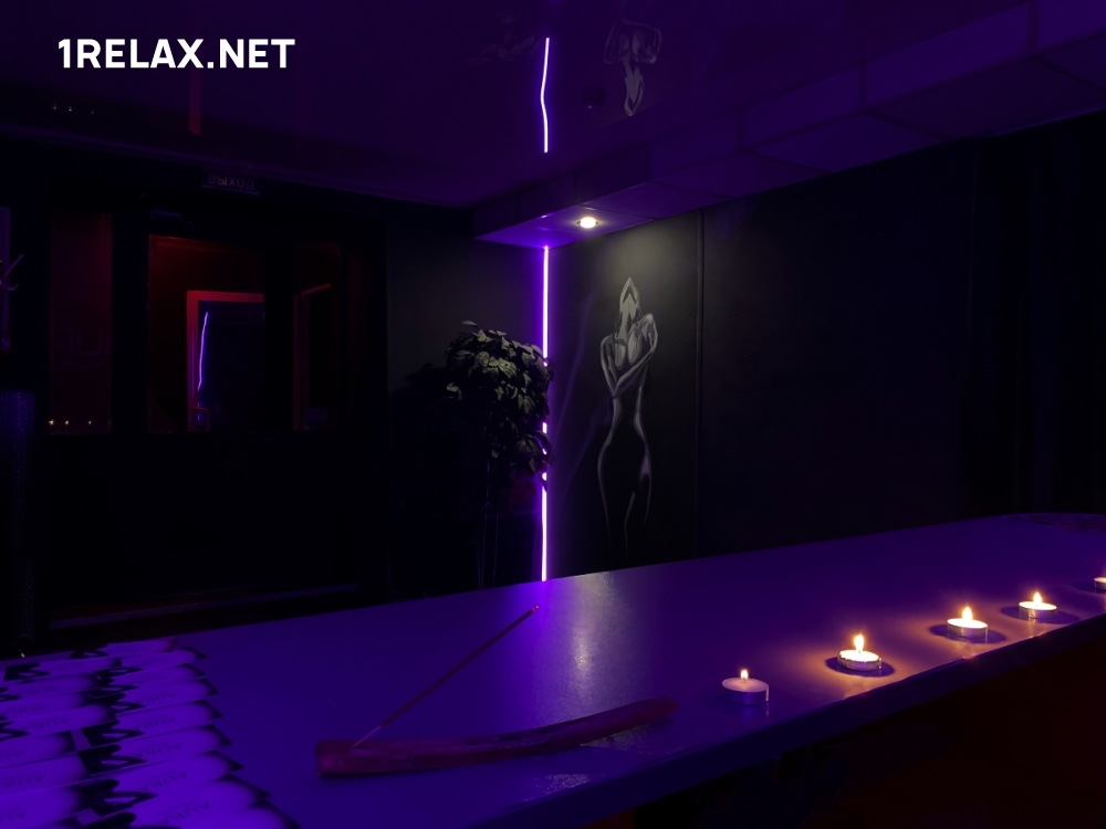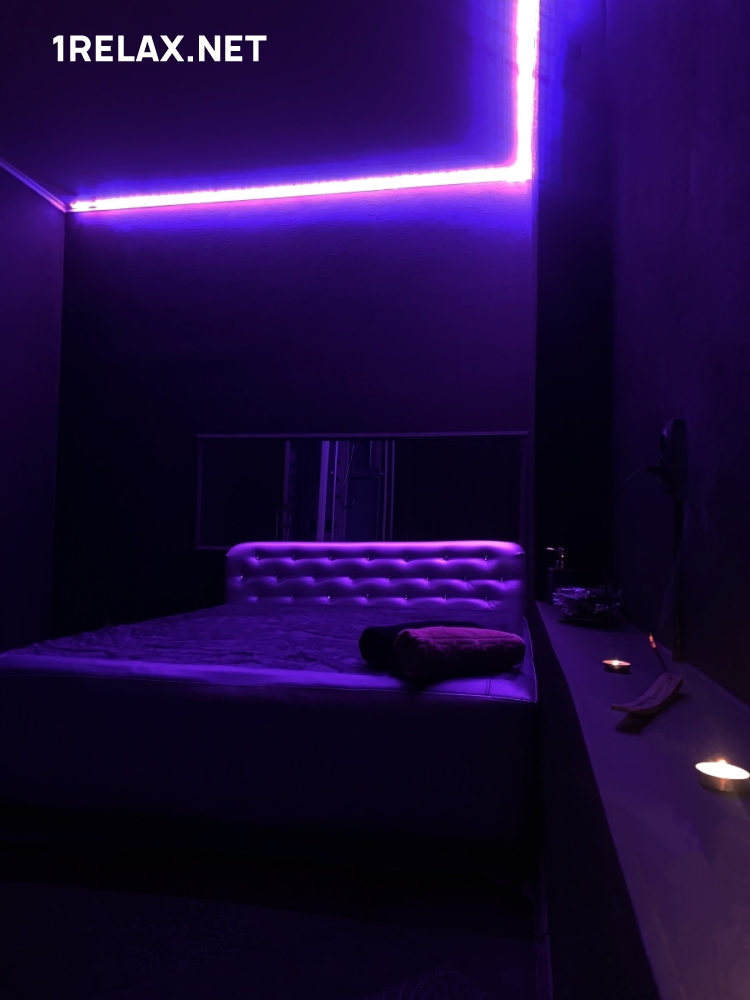 С первой минуты здесь забываются проблемы, усталость, тревоги. Остаются лишь абсолютная страсть и безграничная нежность, сексуальные удовольствия и чистый экстаз. В массажном салоне три комнаты. Стильный интерьер оформлен в черных тонах, приглушенная подсветка придает особое таинственное очарование.
