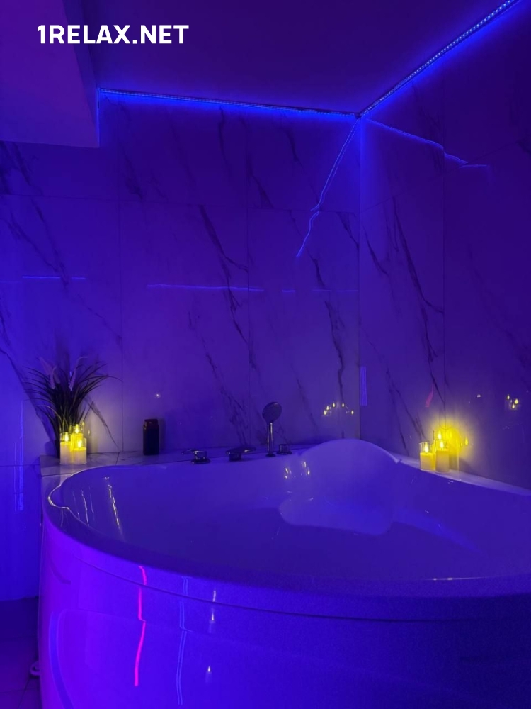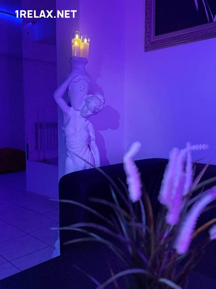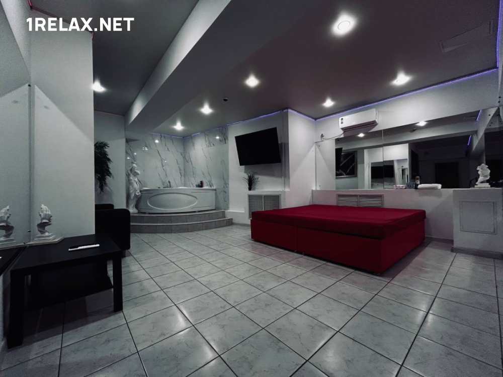 Пять комнат массажного салона радуют глаз дизайнерским интерьером, который будоражит воображение и настраивает на фантастическое удовольствие. В каждой комнате есть все необходимое — удобная кровать, мягкая мебель для отдыха, кондиционер. Перед сеансом можно принять душ или расслабиться в джакузи.