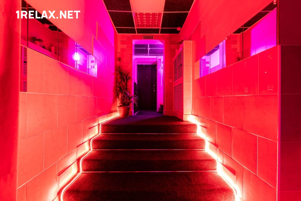 Здесь гостей ждут четыре просторные комнаты, оснащенные большими кроватями и джакузи. Чувственную атмосферу создают приглушенное освещение и танцующее пламя свечей. Для отдыха предусмотрены кожаные диваны с сервированными столиками. Перед сеансом гостю будет приятно поближе познакомиться с мастером, непринужденно беседуя с девушкой в джакузи.